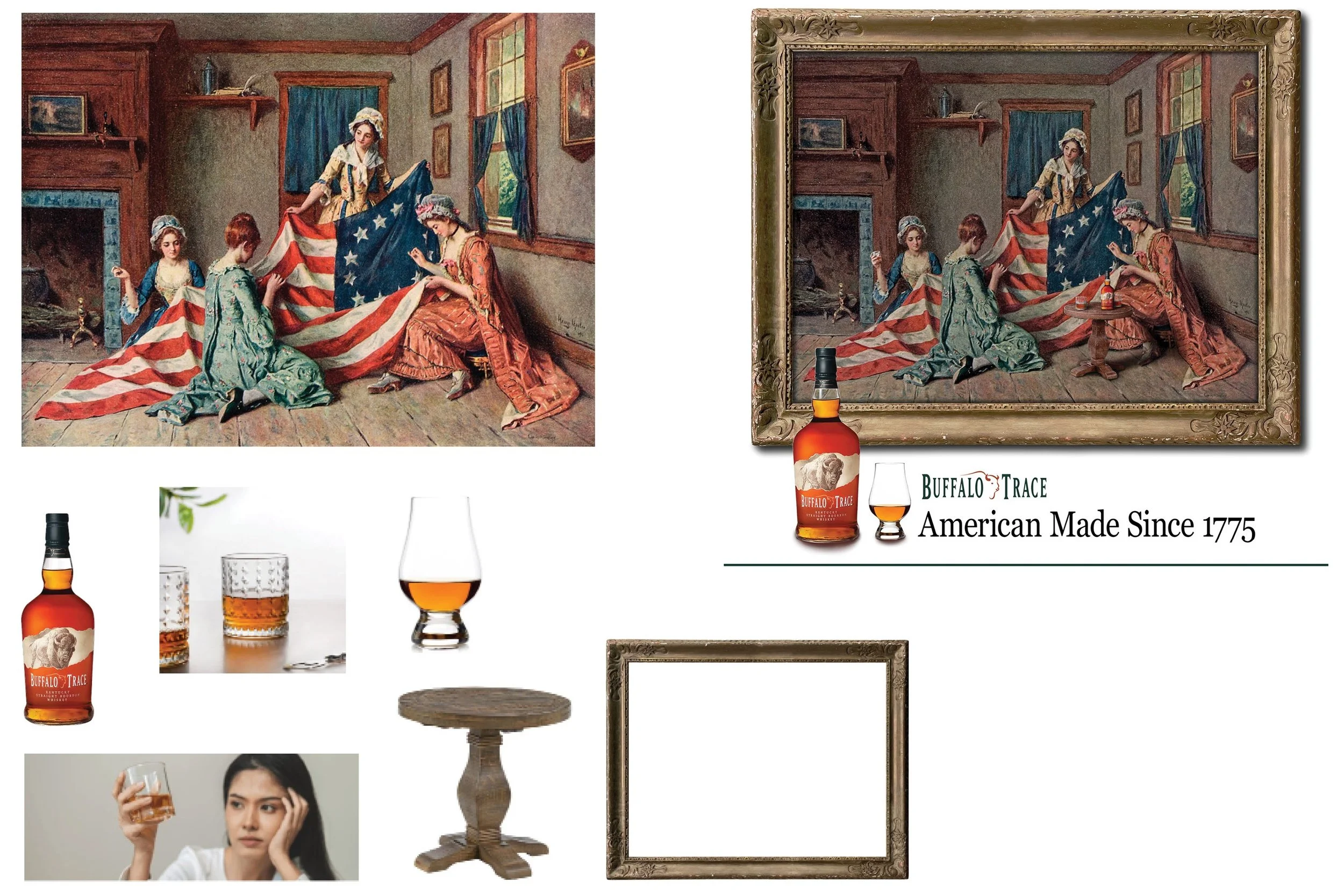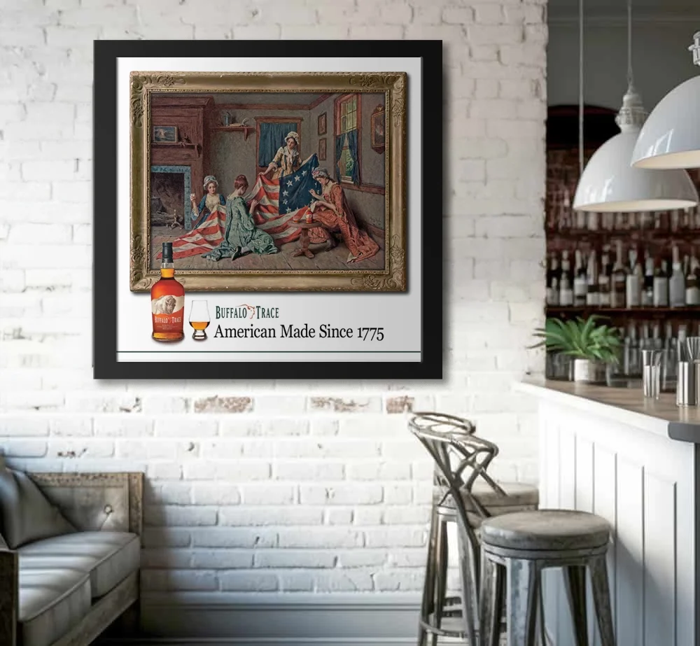 A project creating an advertising campaign combining Buffalo Trace Distillery products with American Revolutionary War era paintings and figures.