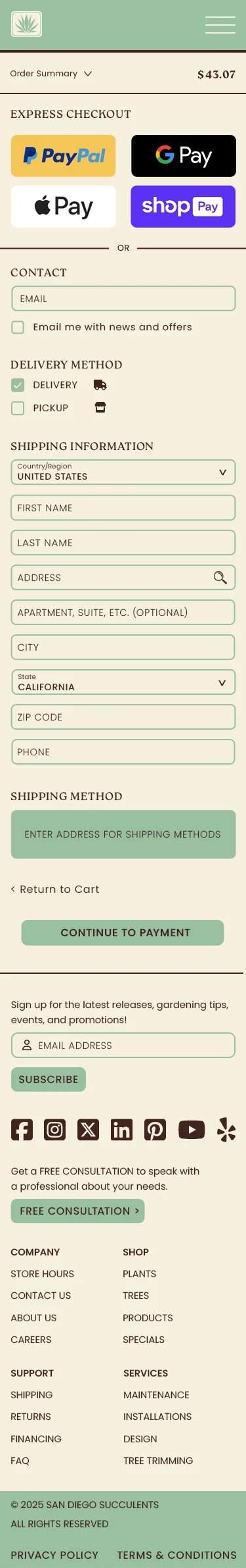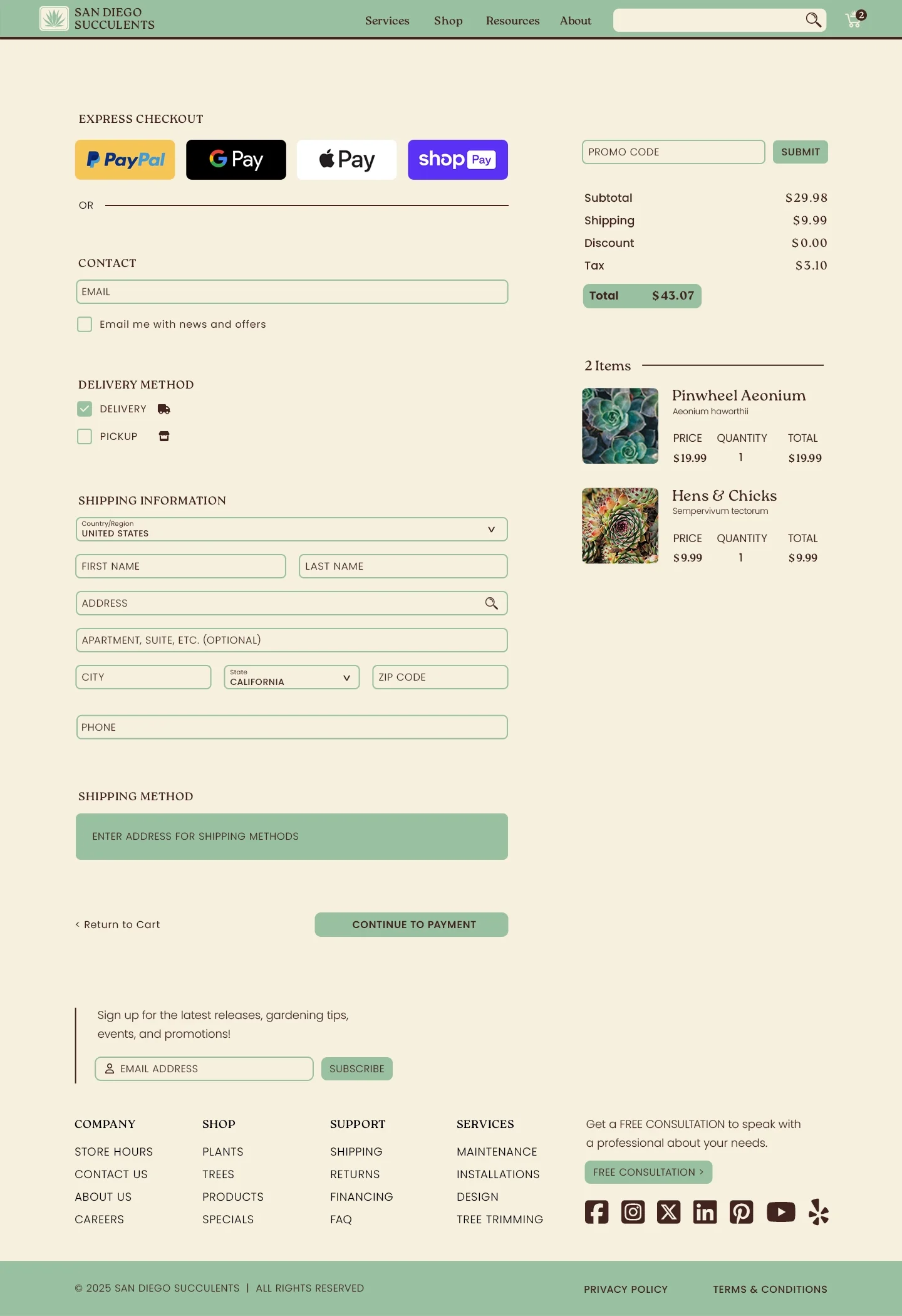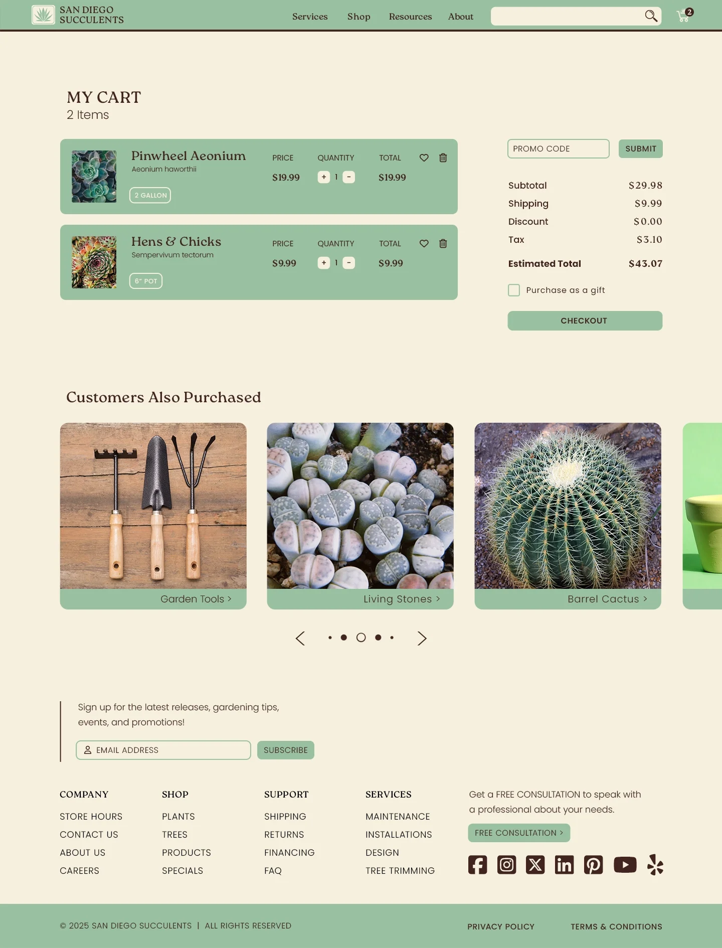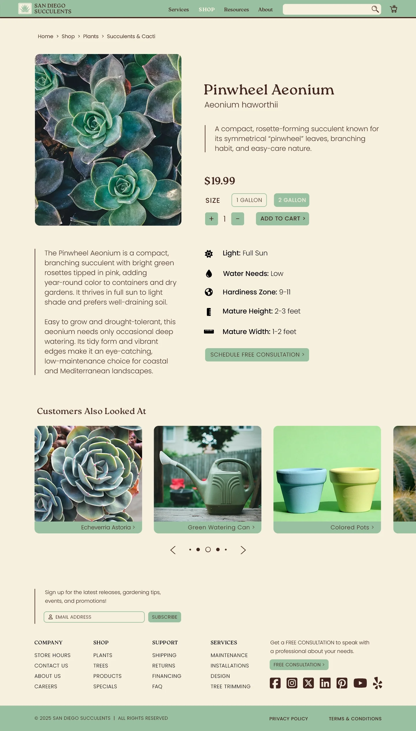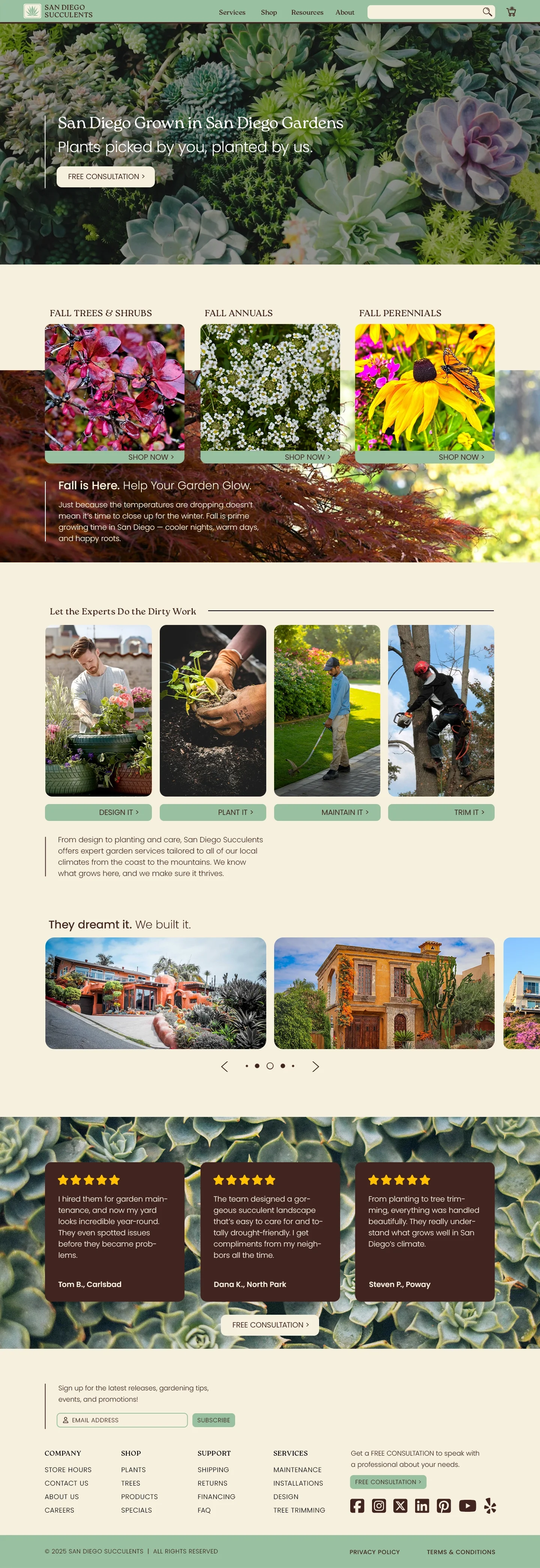A project designing a fictitious website for a nursery in San Diego that focuses on providing local design services, maintenance, and its online shop.