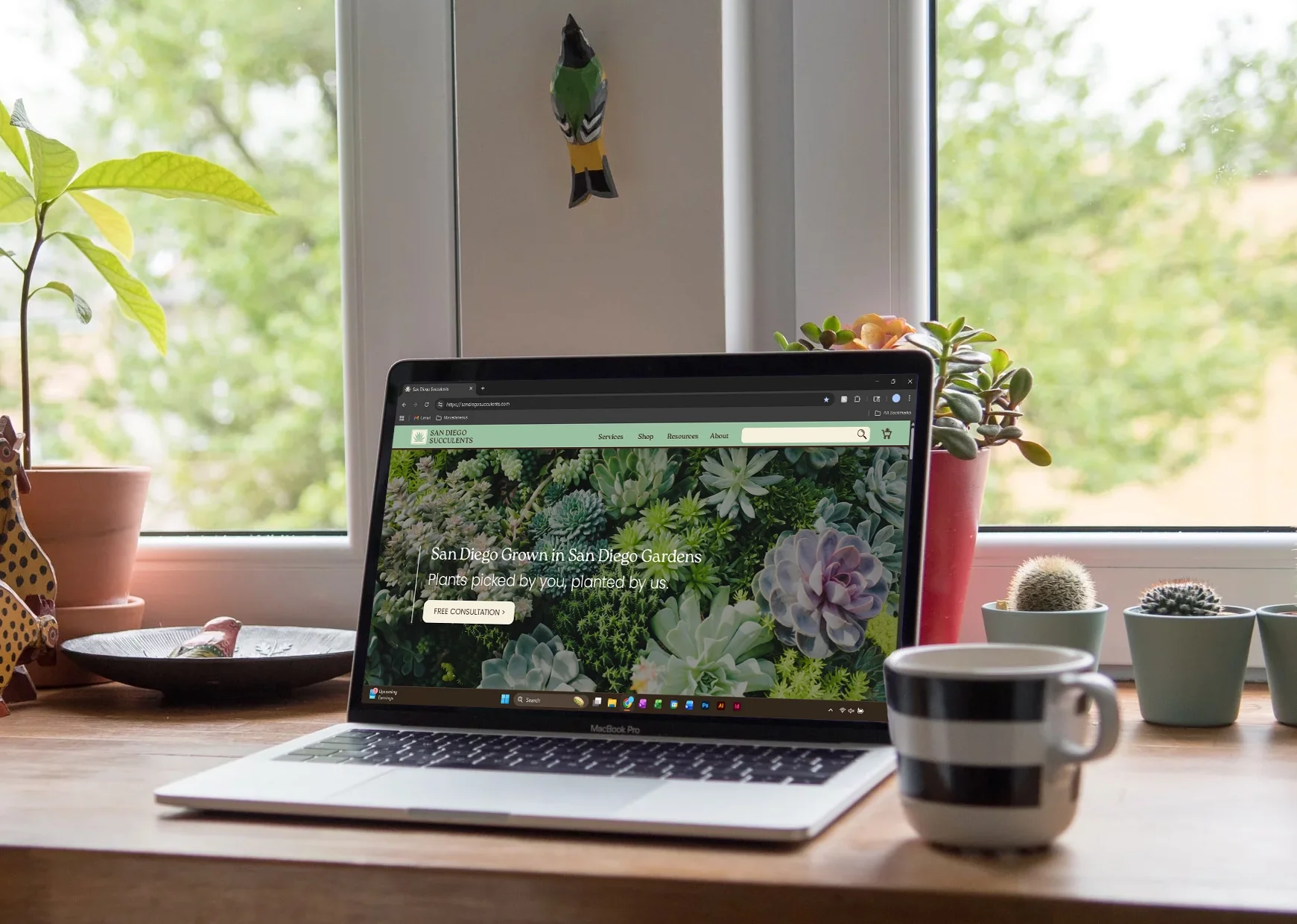 San Diego Succulents is a fictional company that offers design and landscaping services as well as a nursery where customers can purchase plants and landscaping products. It prides itself on its expertise in the microclimates of San Diego and knowing how to design and care for landscapes in the area.
